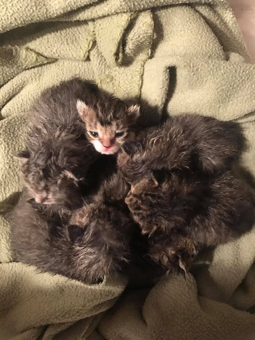 A litter of tiny kittens, just a couple of days old, were found without a mother in sight.