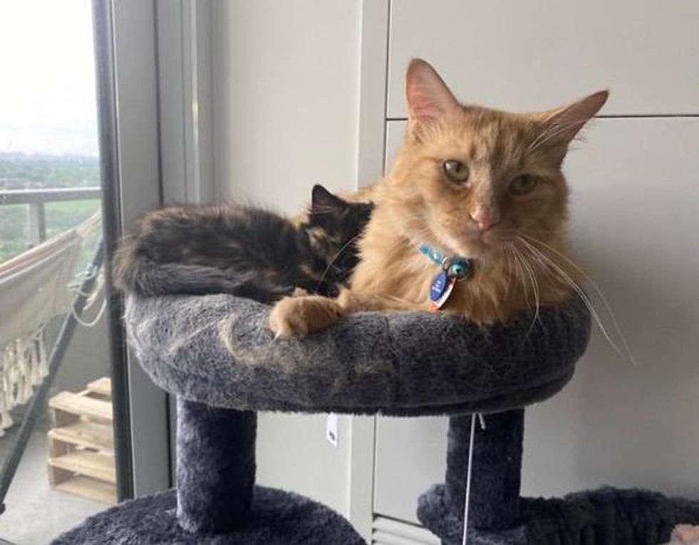 Nova has taken to her new big brother, Milo, and spends plenty of time snuggling with him in the cat tree. Charlie the tuxedo has quickly become the ruler over his new kingdom.