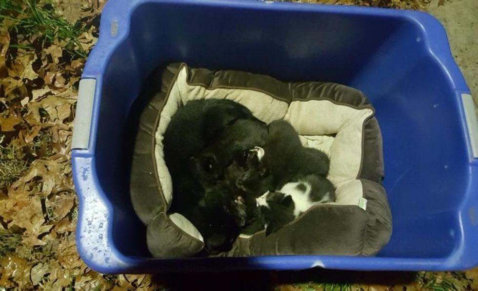 A littler of abandoned kittens were found huddling together with their cat "mom", but when the rescuers came they were surprised to discover that their "mama" is not mom at all.