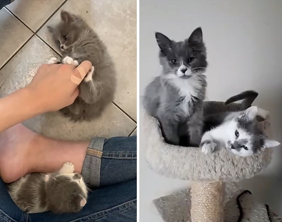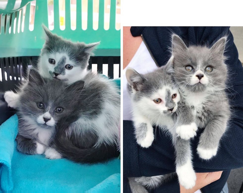 The kittens, Sylvestre (the dark gray, fluffier one) and Effie, were around three weeks old and just skin and bones. They clung to each other and refused to be separated. Alyson stayed up a few nights to ensure that they were fed and cared for around the clock — the painstaking efforts brought the kittens back to health.