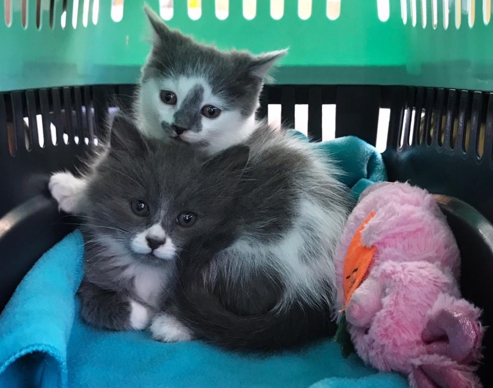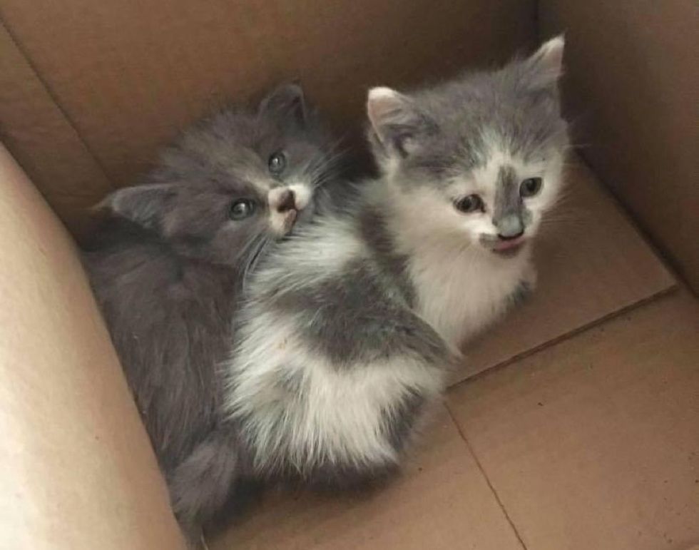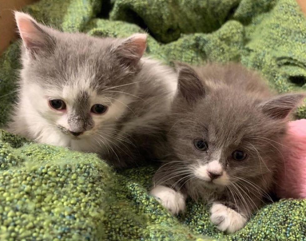 They were very fearful, huddled up to each other for comfort. The finder looked around for the mother and other kittens but didn't find any. She couldn't leave the pair out to fend for themselves, and scooped them up and reached out for help.