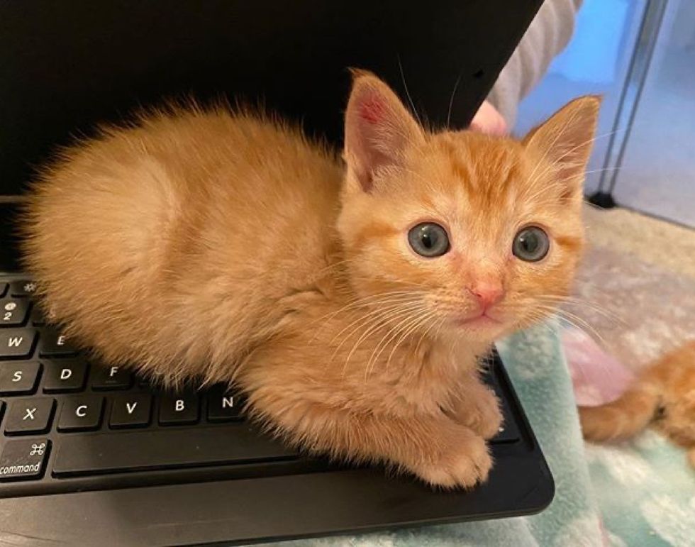 These sweet kittens are natural keyboard cats. As soon as Kayla puts a laptop down, a little ball of fluff hops right on as if to offer a helping paw.
