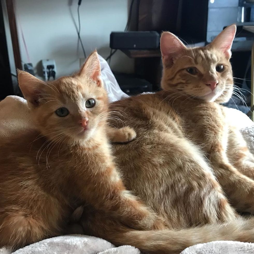 Roni was the shyest kitty so Leo offered him some extra TLC. As he wrapped his arms around him, the two began to purr in perfect harmony.