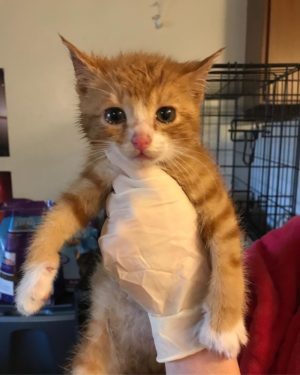 While the mama cat named Noodle was being cared for by the veterinary staff, the kittens went to their foster home with Krissy.