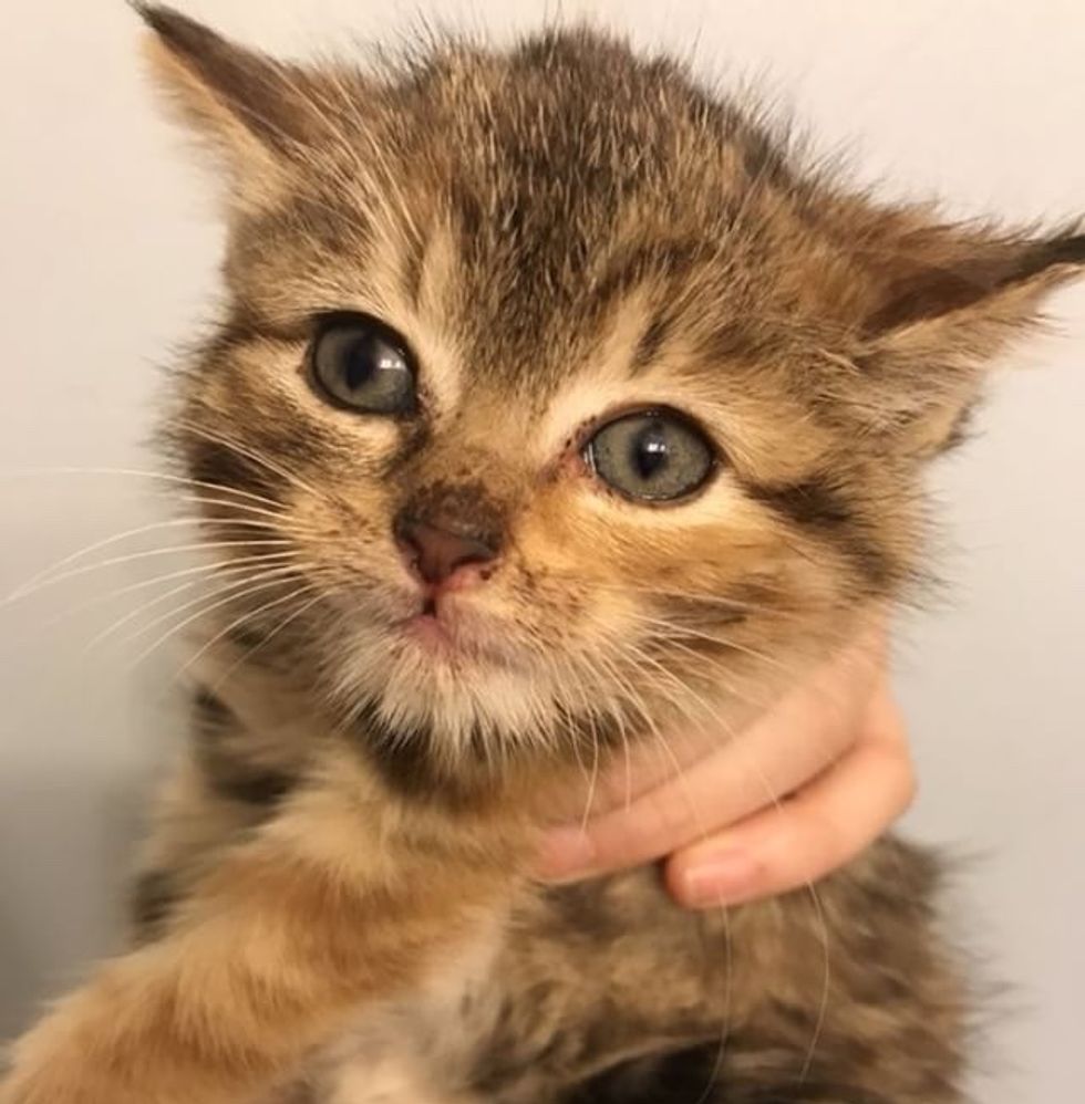 The kitten was just skin and bones, but she was happy to be warm again and have some food in her belly.