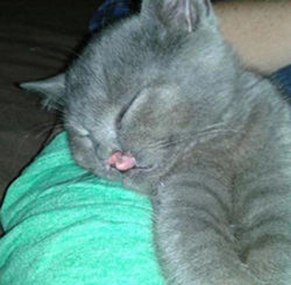 Lazarus is a special kitty born with a cleft palate. He has a unique look, and he is so loving that he may just be able to be a therapy cat.