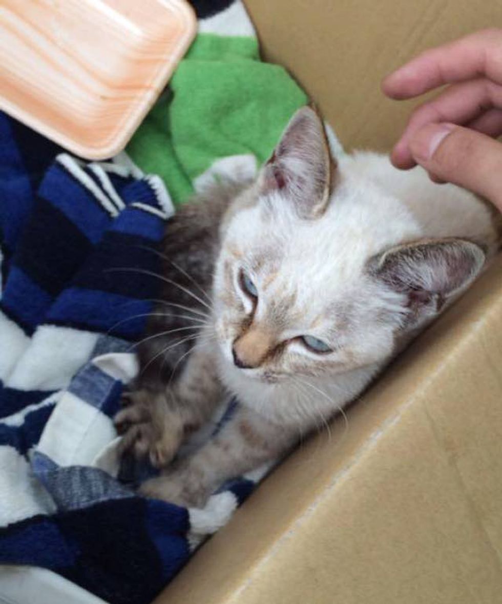 It didn't take long for the kitten to steal the man's heart, and the next he knew he was on his way home with a kitty in a box.