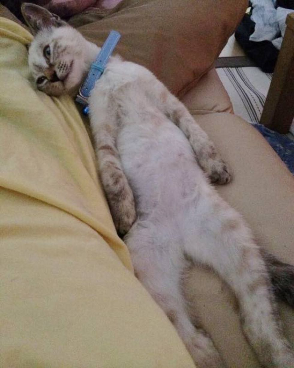 An hour after they got home, she was falling asleep on her human.