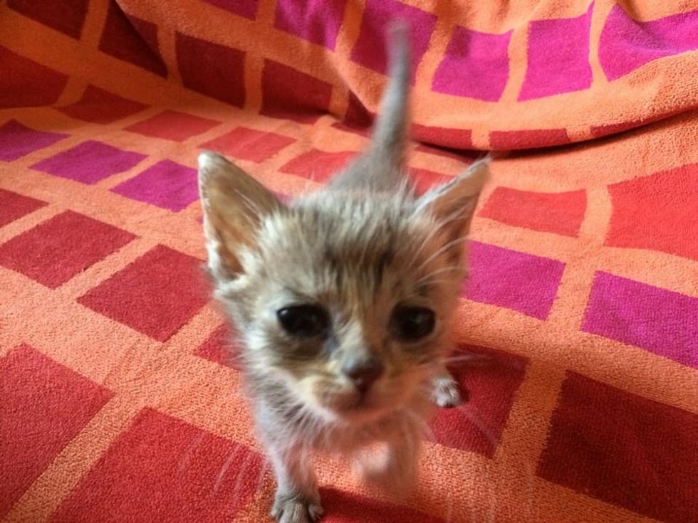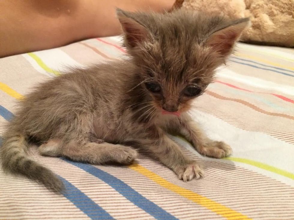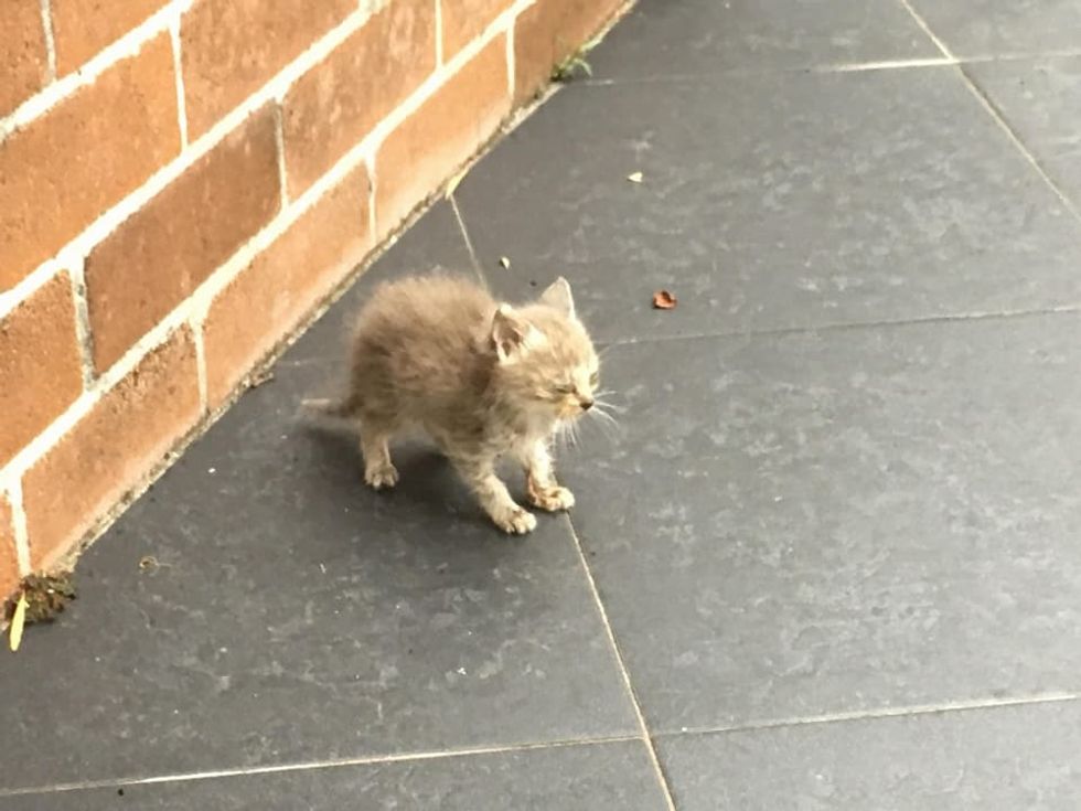 A scrawny 4-week-old kitten was found on the streets of New South Wales, Australia. A man took the kitty off the sidewalk and got him help just in time.