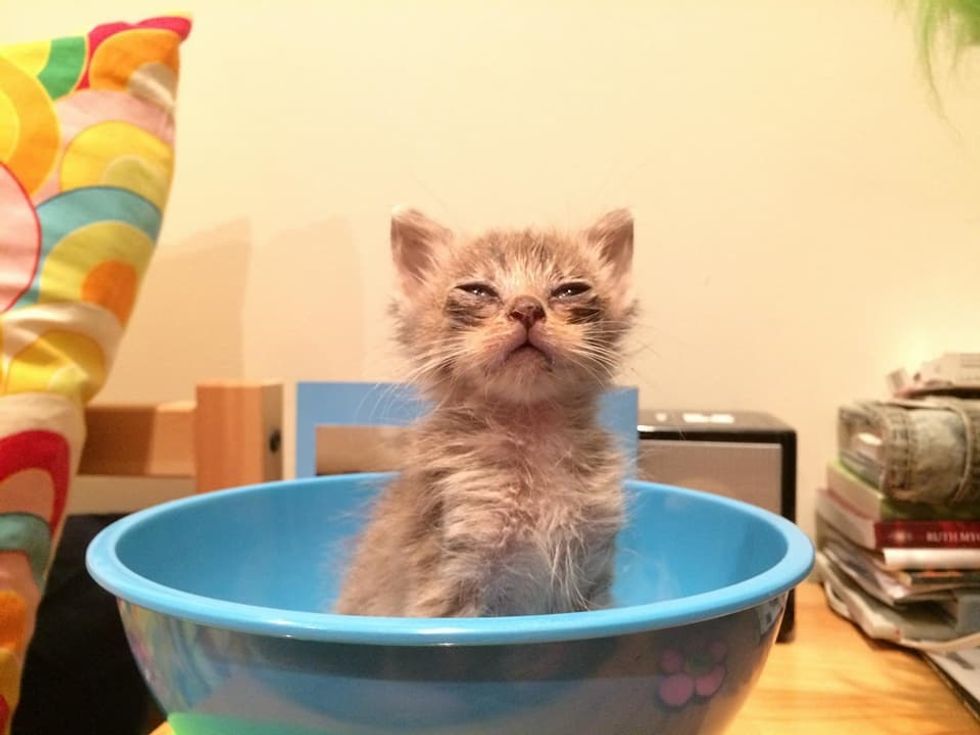 "He is eating and gaining weight. We are treating his cat flu with very small amount of medication and his eyes are looking a lot better already," Jenny told Love Meow.