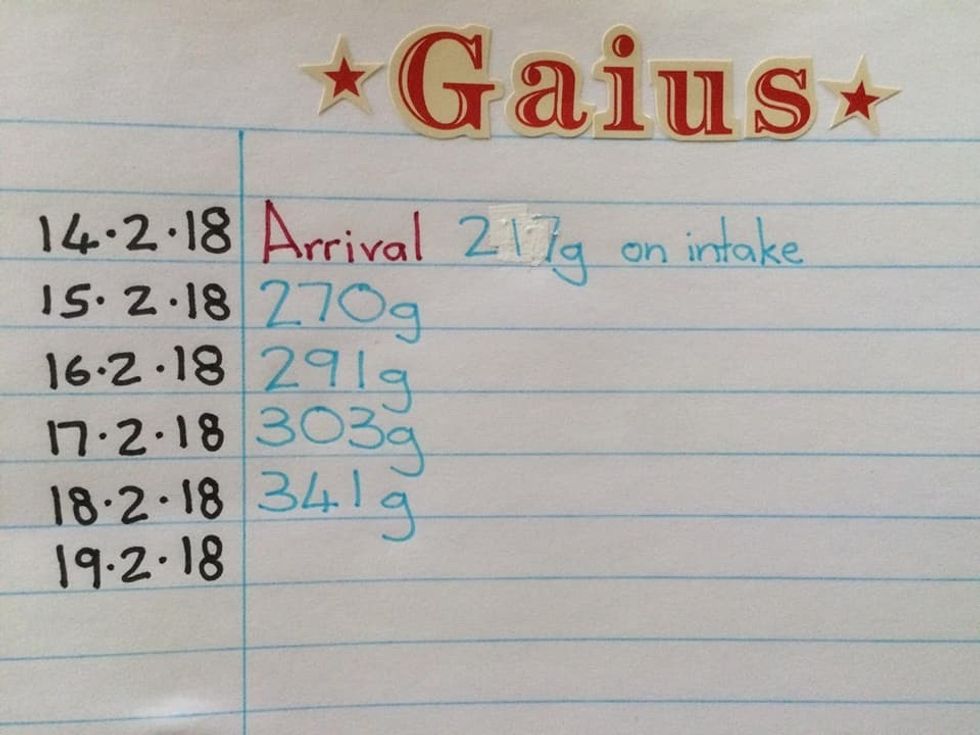 "He has a long way to go but is looking a lot better already," the rescue said. "Go Gaius. You're an awesome little fighter and we've got your back!"