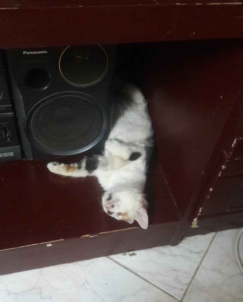 "She learned to navigate around the apartment more easily than I'd expected. When I first brought her in she could barely walk. The more strength she regained, the more she started exploring everywhere, even found a few favorite sleeping spots in tight spaces around the house," Zeyad told Love Meow.