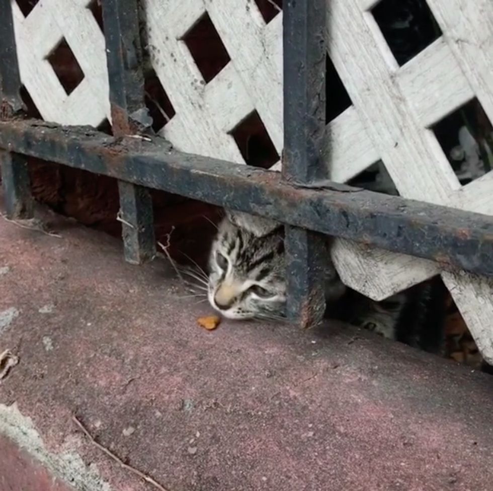 Will gave the little one some food to coax him out. Once he got the tabby, he brought him to be reunited with his brother.