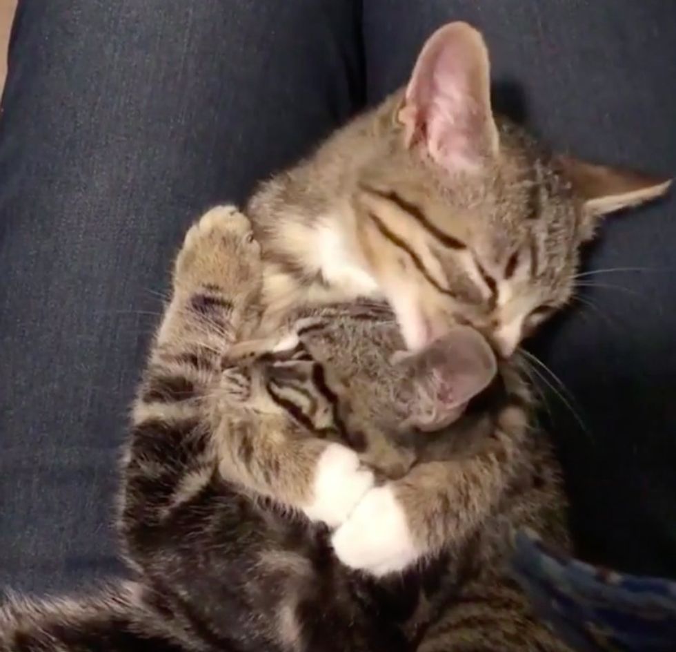 Within a couple hours, he warmed up to his human friends and the two brothers were back to playing and cuddling again.