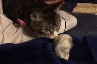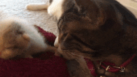 She showered the new foster baby with nurturing love as she always does to all the foster kittens that Joyce brings home.
