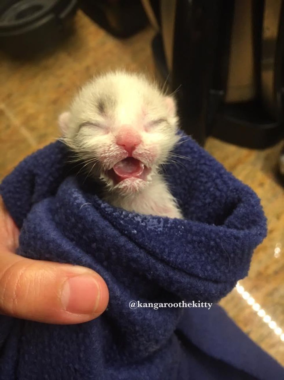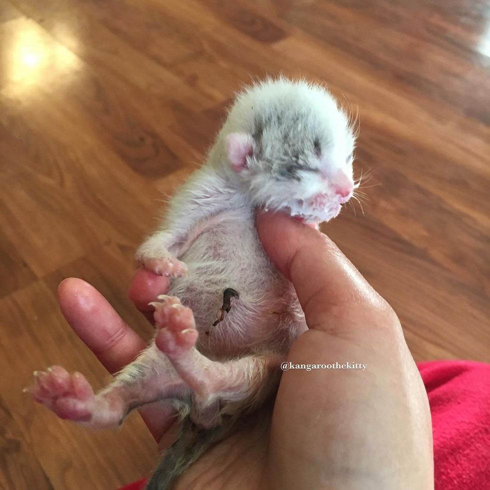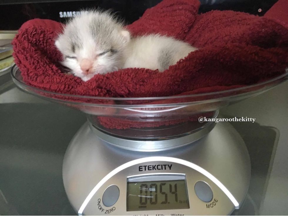 "He's doing great. He was 3.6 oz when we got him and weighs 5 oz as of yesterday," Joyce told Love Meow.