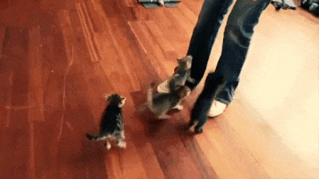 When kittens are little, they demand food like no other, meowing on top of their lungs and sometimes they choose to take matters in their own paws and climb up their caretaker's leg to get what they want. It's never fast enough for these little hungry babies.