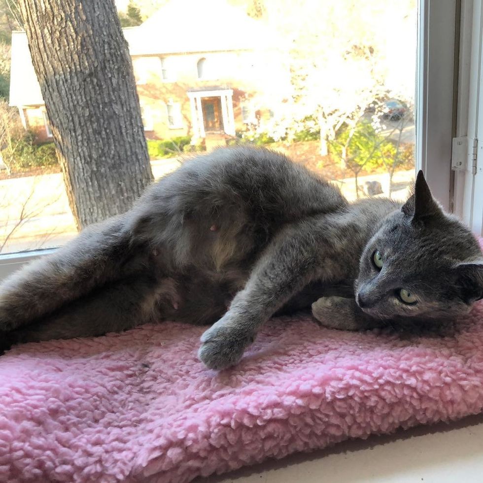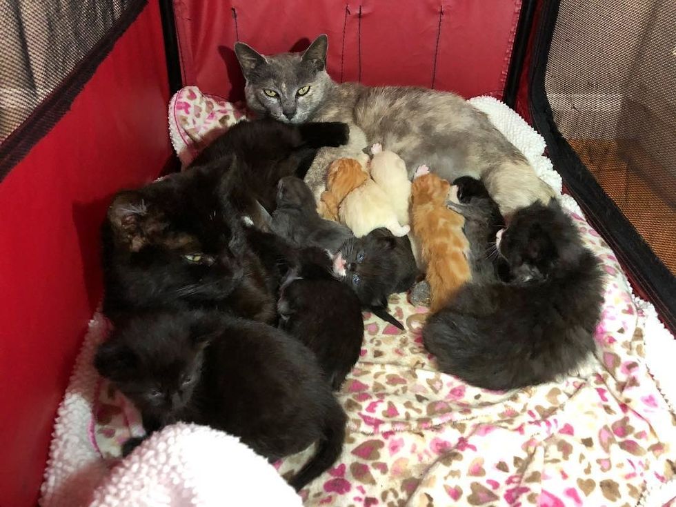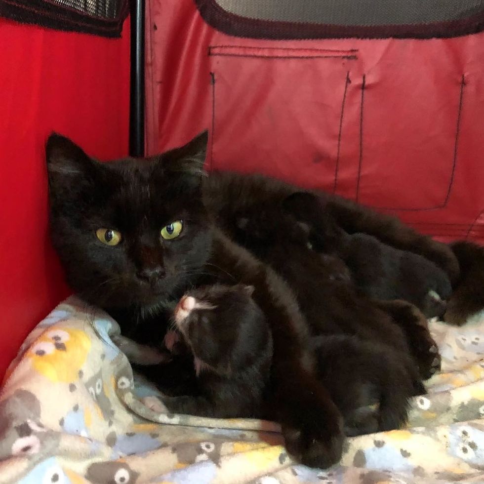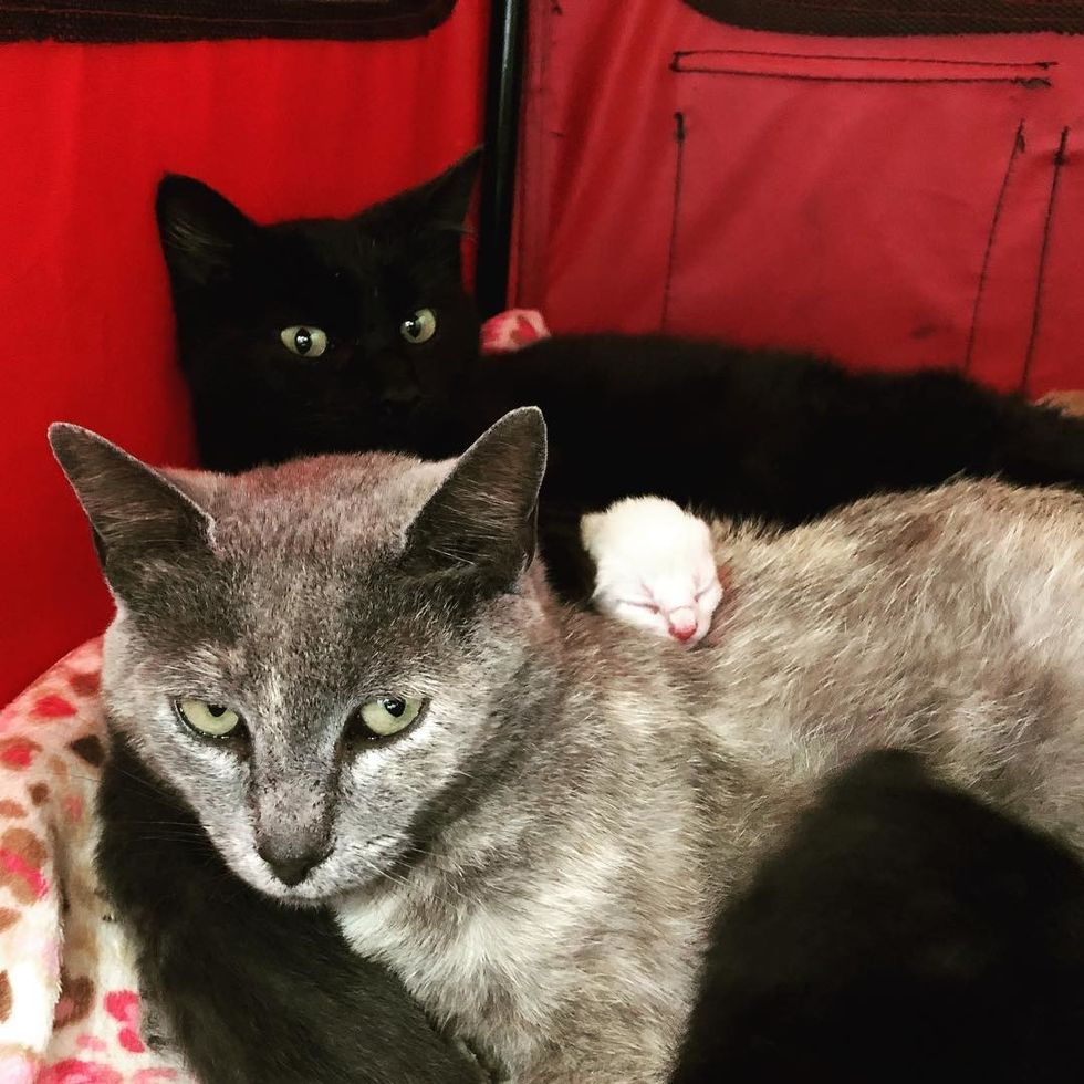 "They came to me to foster on February 20th. We expected Kristi to have her kittens nearly immediately because she was so big (she looked like she'd swallowed a basketball). We figured we'd have a while to wait for Katia to have her kittens," Robyn told Love Meow.