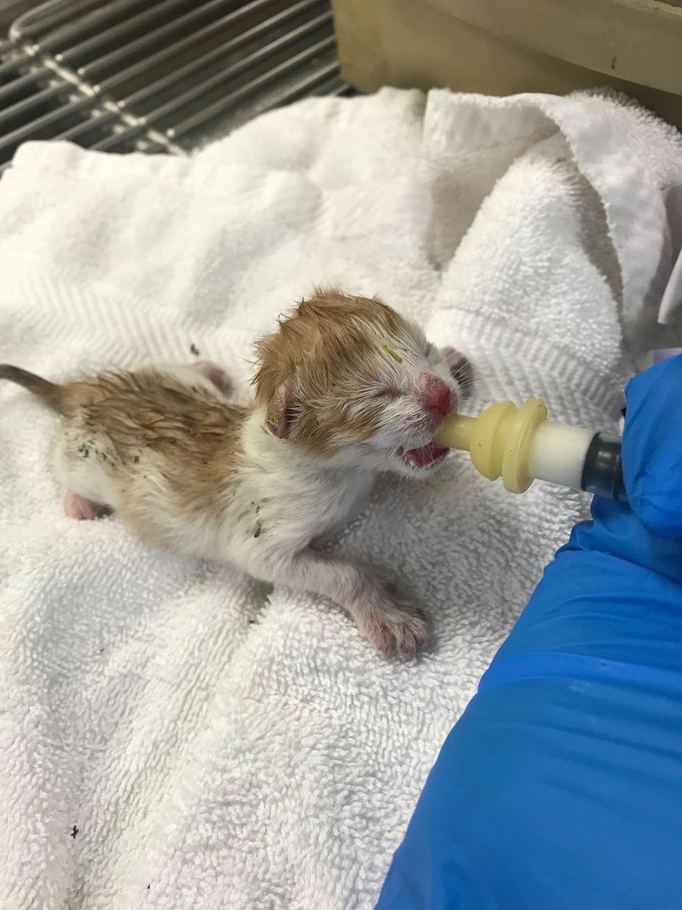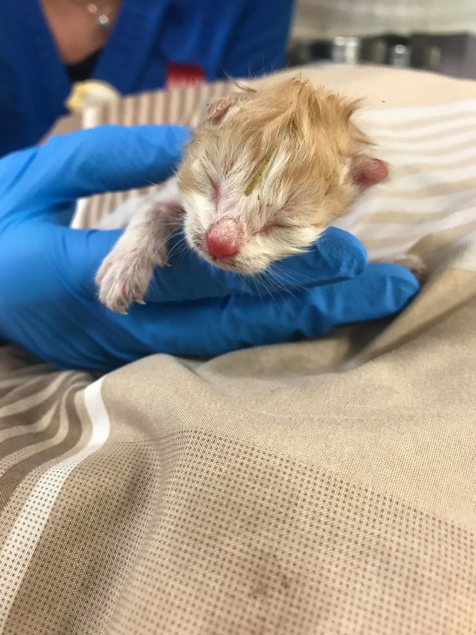 A tiny newborn kitten was brought to an animal hospital in Coral Springs, Florida last week, in need of a lot of TLC.