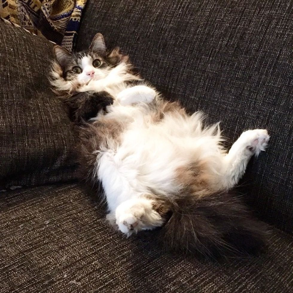 "Pippin was born with radial hypoplasia, a rare disease that twisted the bones in his front legs. When he was born he couldn't walk, and the vet wasn't sure if he would survive. With a lot of work and patience Pippin has adapted to living on two legs and is as happy and playful as any other cat," said Pippin's human via Instagram.