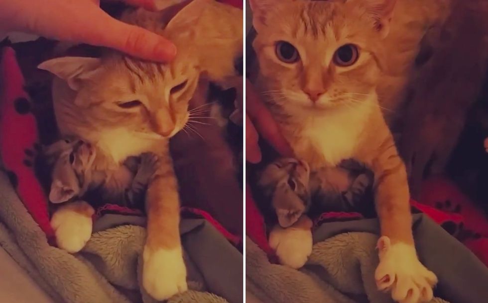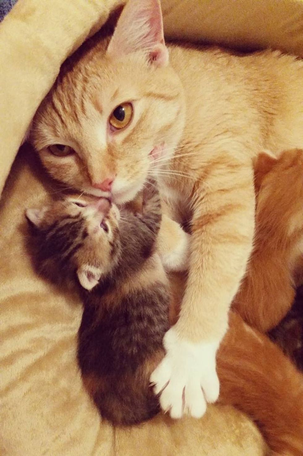 When the ginger gal stepped into her new foster home, she walked up to Marlena, sniffed her hand and meowed sweetly at her as if she was saying "Thank you for saving me and my babies."