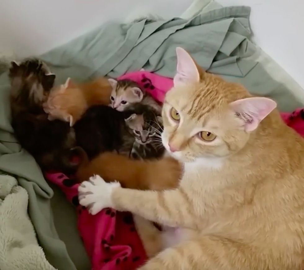 A couple days later, she gave birth to five gorgeous healthy babies. Mama Rose immediately showered them with love and cuddles. She filled the entire room with her endless affection.