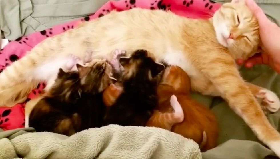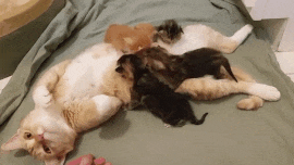 Rose loves stretching out on her back, making air muffins while her kittens are nursing away.