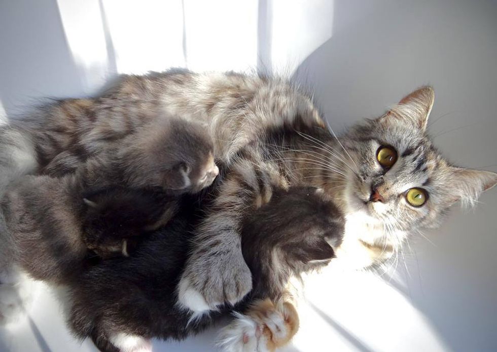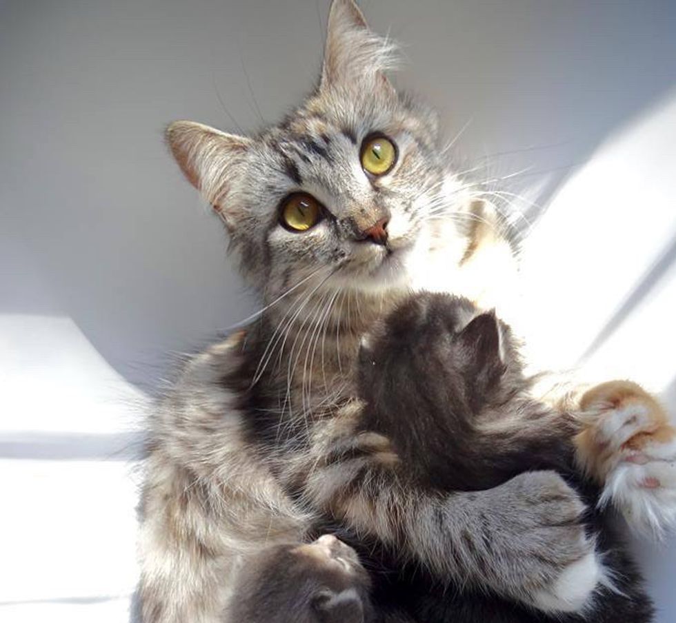 On October 4th, Katnyss gave birth to three beautiful, healthy kittens. Chatons Orphelins Montréal took the feline family in a few days later so they could receive proper care they needed to thrive.