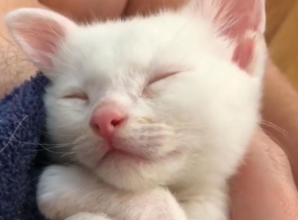 Meeps, the weakest kitten in the litter, was hanging on with all her might. Her eyes were sealed shut due to infections.