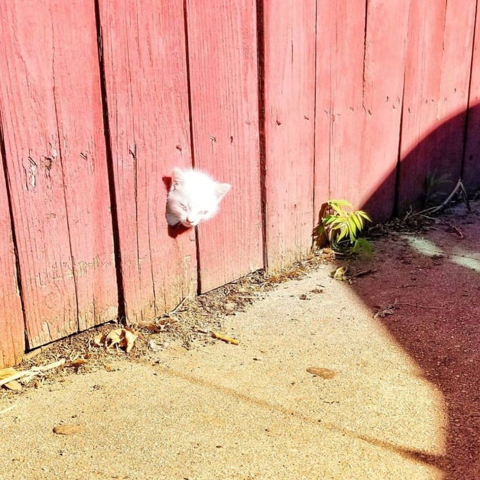 In May, rescuers from Alley Cat Rescue worked on a TNR (trap-neuter-return) project near the North Hollywood Metro station in Los Angeles. While they were there, they discovered a tiny kitten poking her head out through a hole in a wooden fence, but she was not alone.