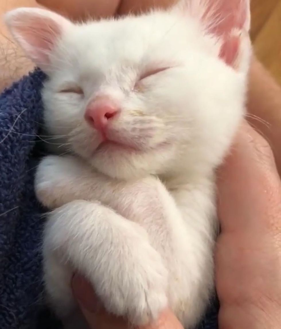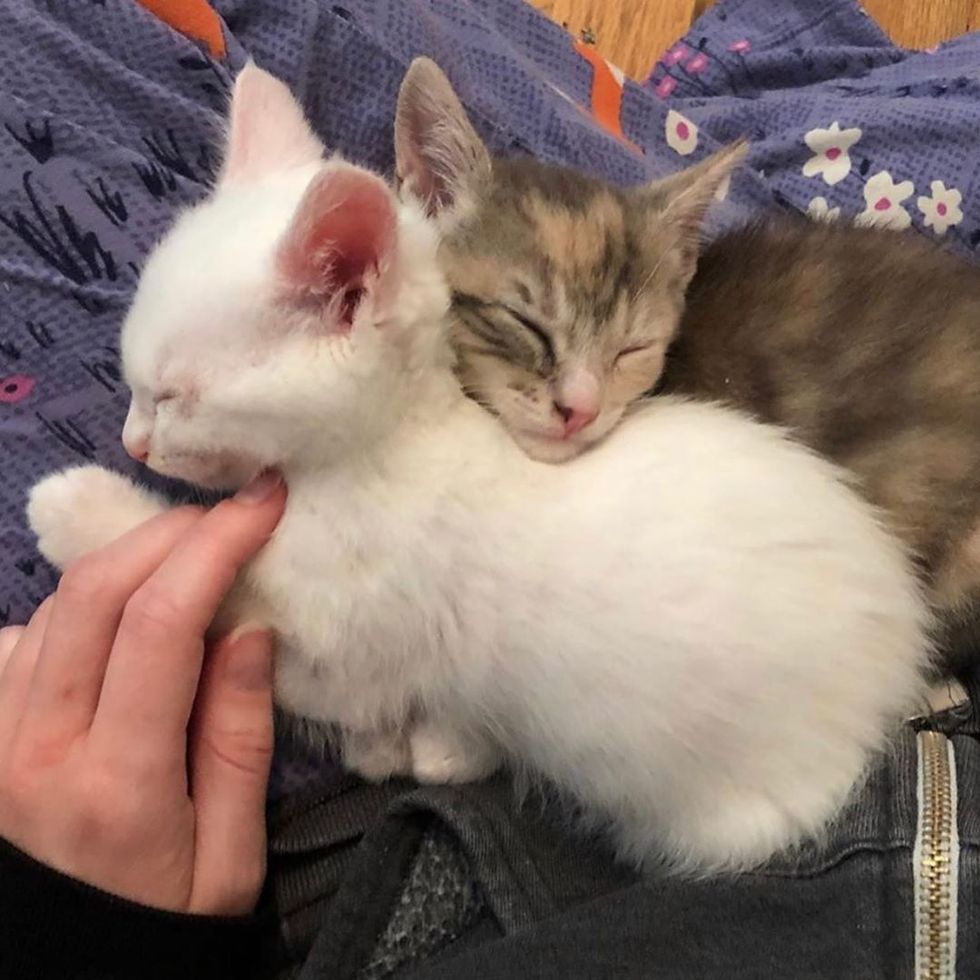 Meeps needed extra attention for her eyes but she never complained and cuddled with her caretakers after every meal.