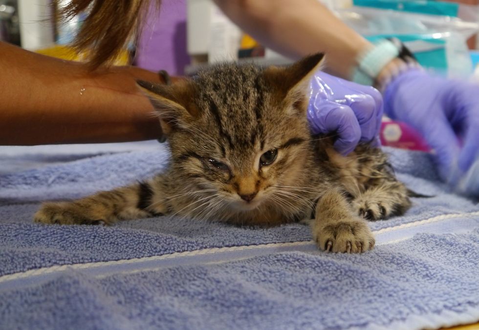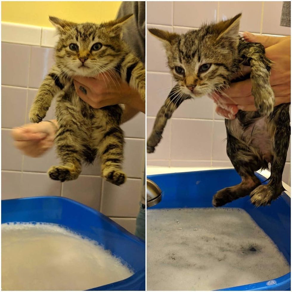 The sweet kitten needed some help staying tidy. Though he didn't like baths, he didn't complain. What a trooper!