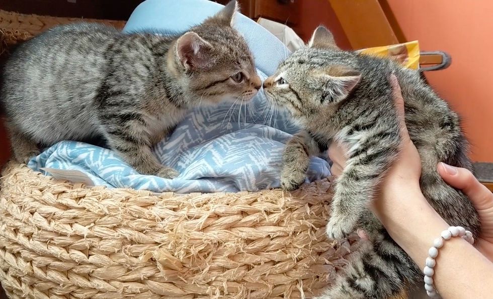 Mistletoe was a little shy at first, but after a few sniffs and swats, the two hit it off, playing with each other just like old times. "Within a few hours they were wrestling and running around together," Brianna told Love Meow.