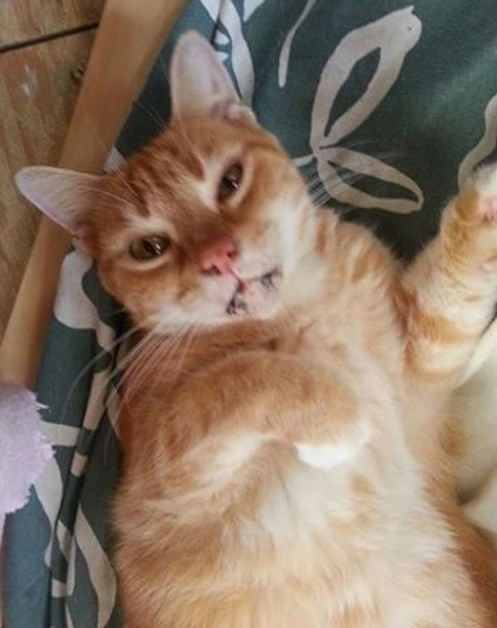 Backpack feeling safe in her new home, no longer hiding herself. You can see the happiness in her eyes.
