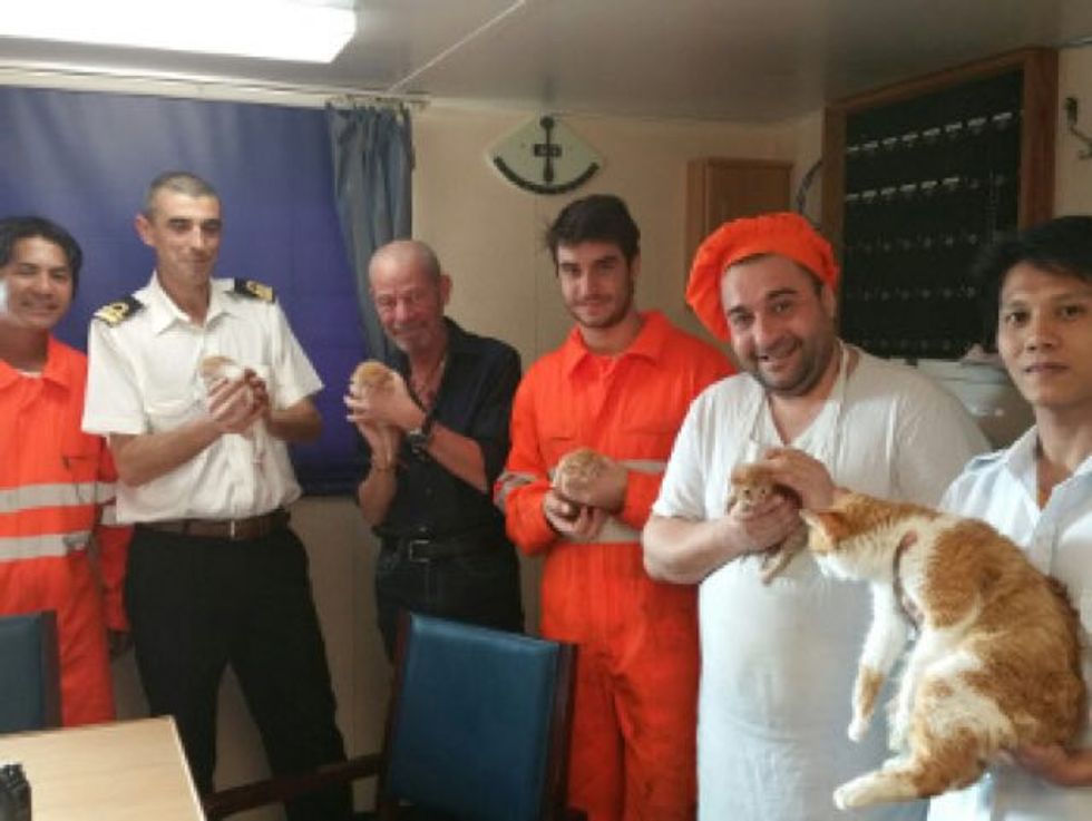 By the time the ship docked at the Port of the Houston, the crew had fallen in love with the furry family.