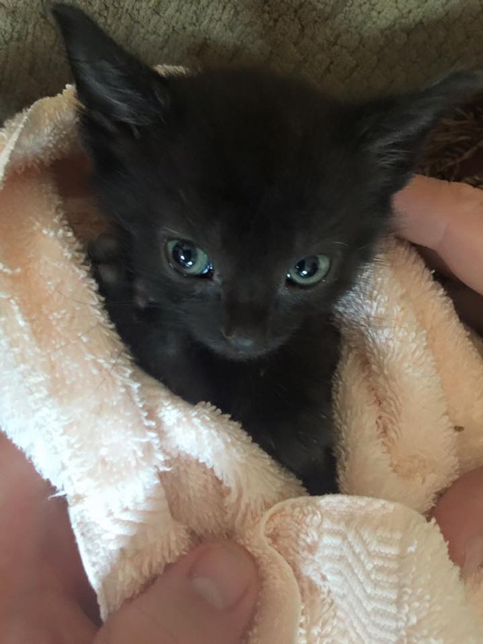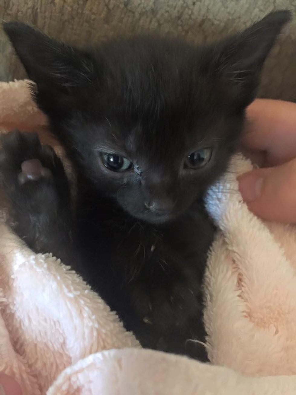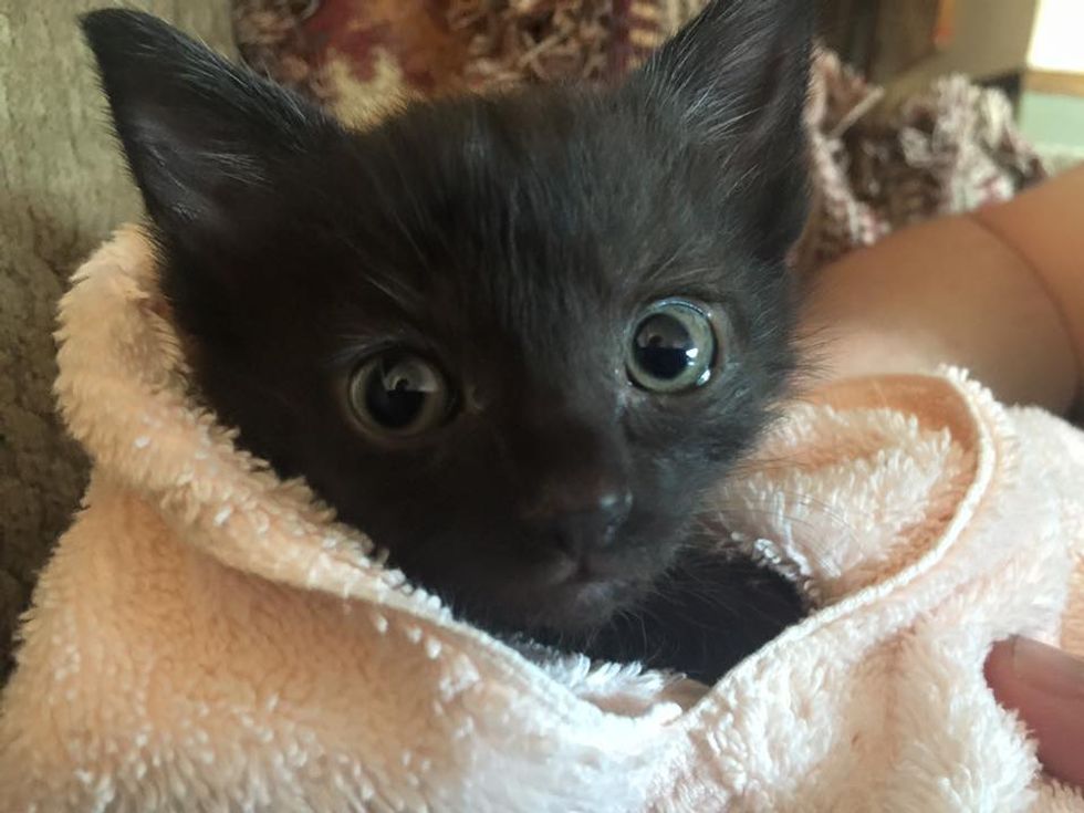 After cleaning her eyes and giving her eye drops, the kitten could see again!