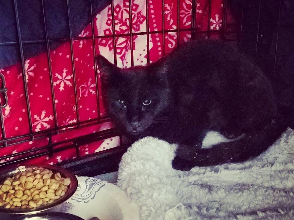 A black cat wandered into a feral cat colony in New York. Local rescuers noticed that he was likely once someone's pet, and he needed help.