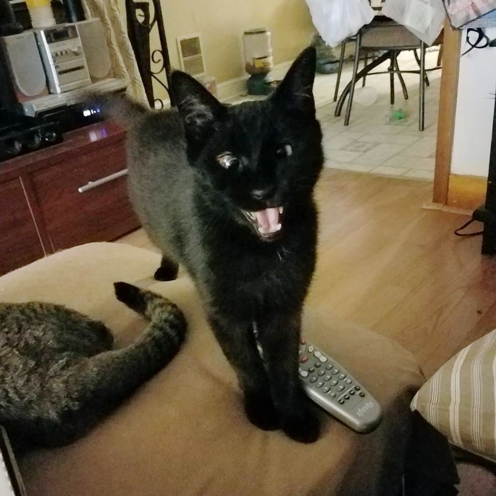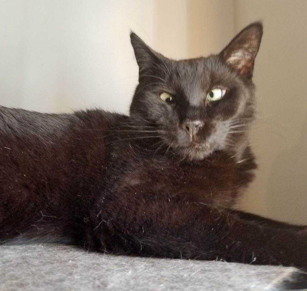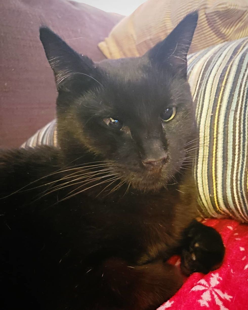 "He's a super sweet cat who loves his life, his cat siblings, bay windows and hanging out on the catio, but he always comes to bed with me every night to cuddle."