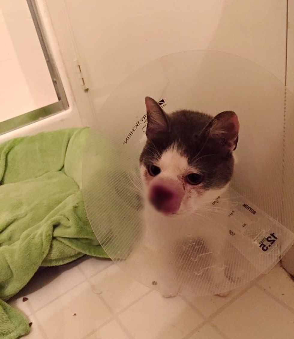 Because of the nose being in such bad shape, he had to be put in a feeding tube.