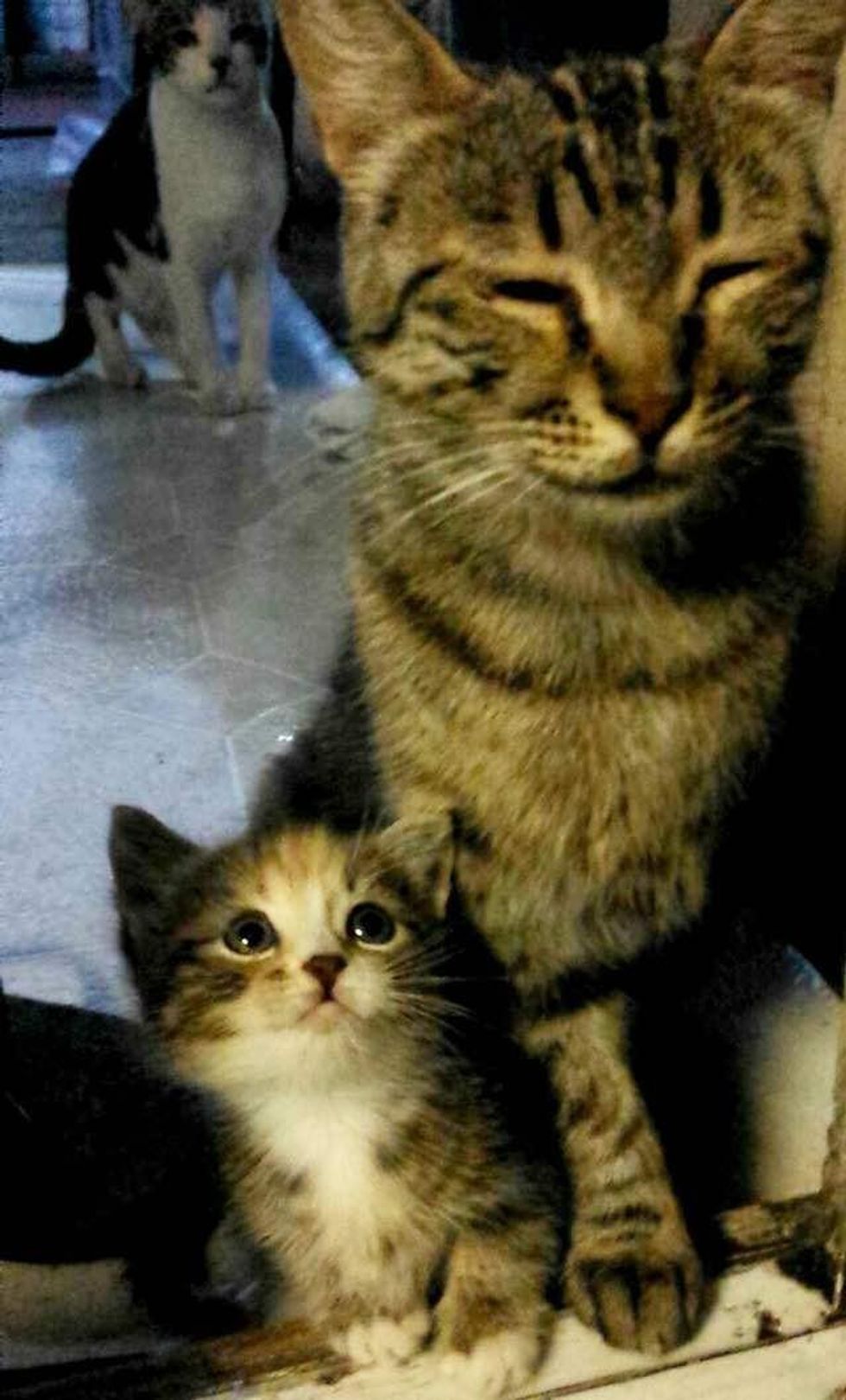 He is keeping the mama and the kitten together and will have both spayed when they are ready.