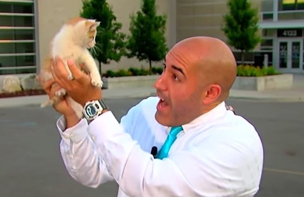 While WXYZ reporter Nima Shaffe was doing a live shot this morning, a tiny furry friend decided to crash the show. As much as the crew wanted to stay on the topic at hand, the kitten's meowing and running around the reporter made it impossible for them to continue without giving the kitten the spotlight she deserved.