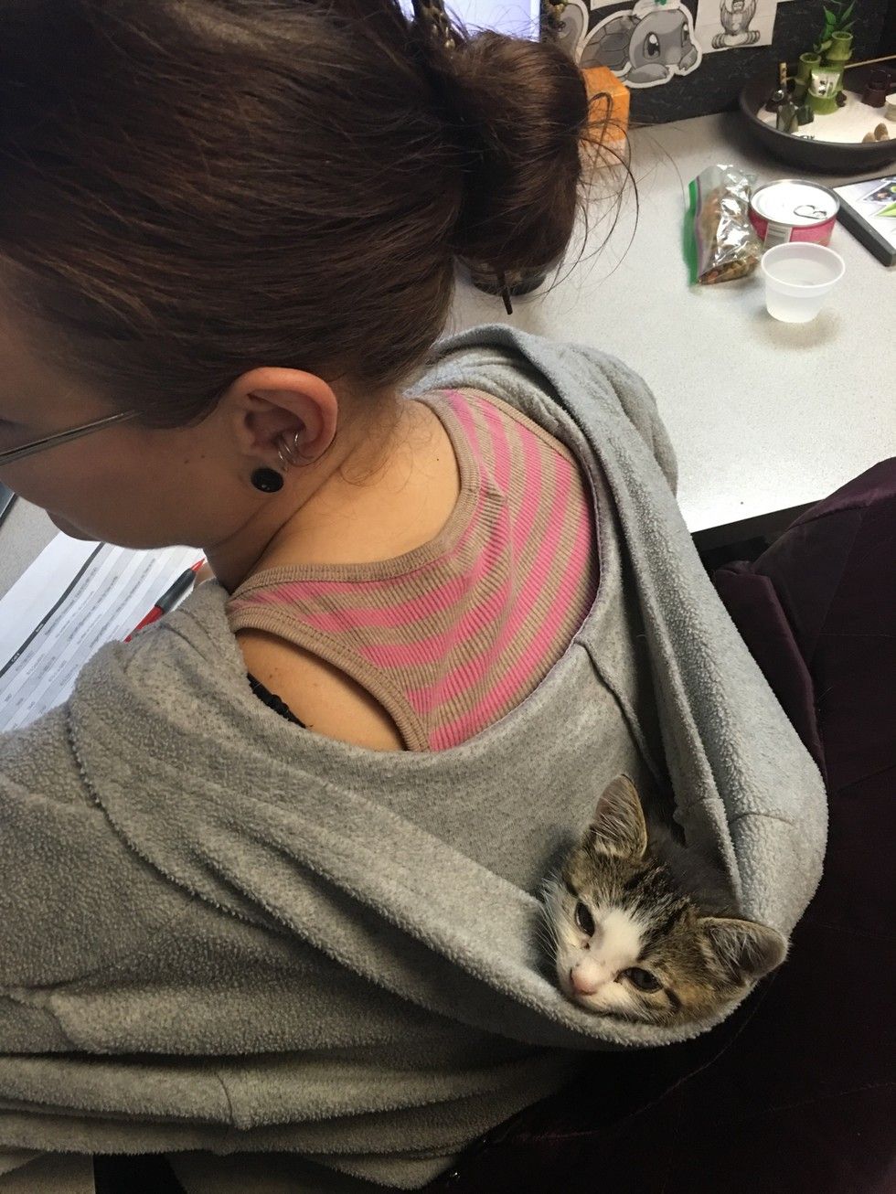 Related story: Little Gray Kitten Strays into the Hearts of Office Employees. Now He's Living the Dream!