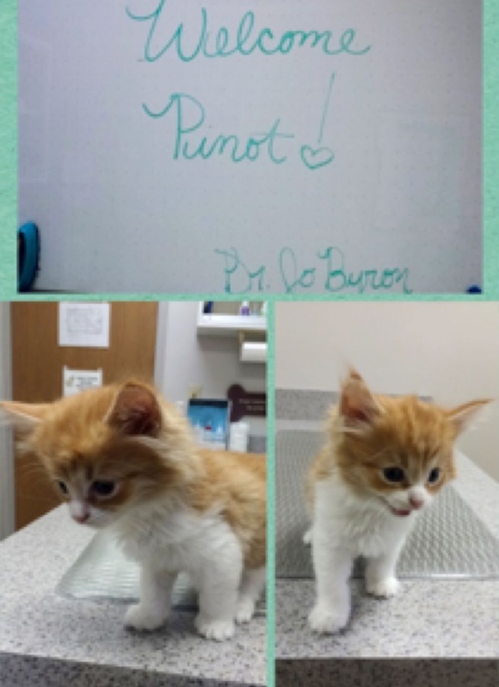 Sarah was smitten with Pinot from the moment she saw him. After a few trips to the vet, the little kitten was back on his paws, stronger than ever.