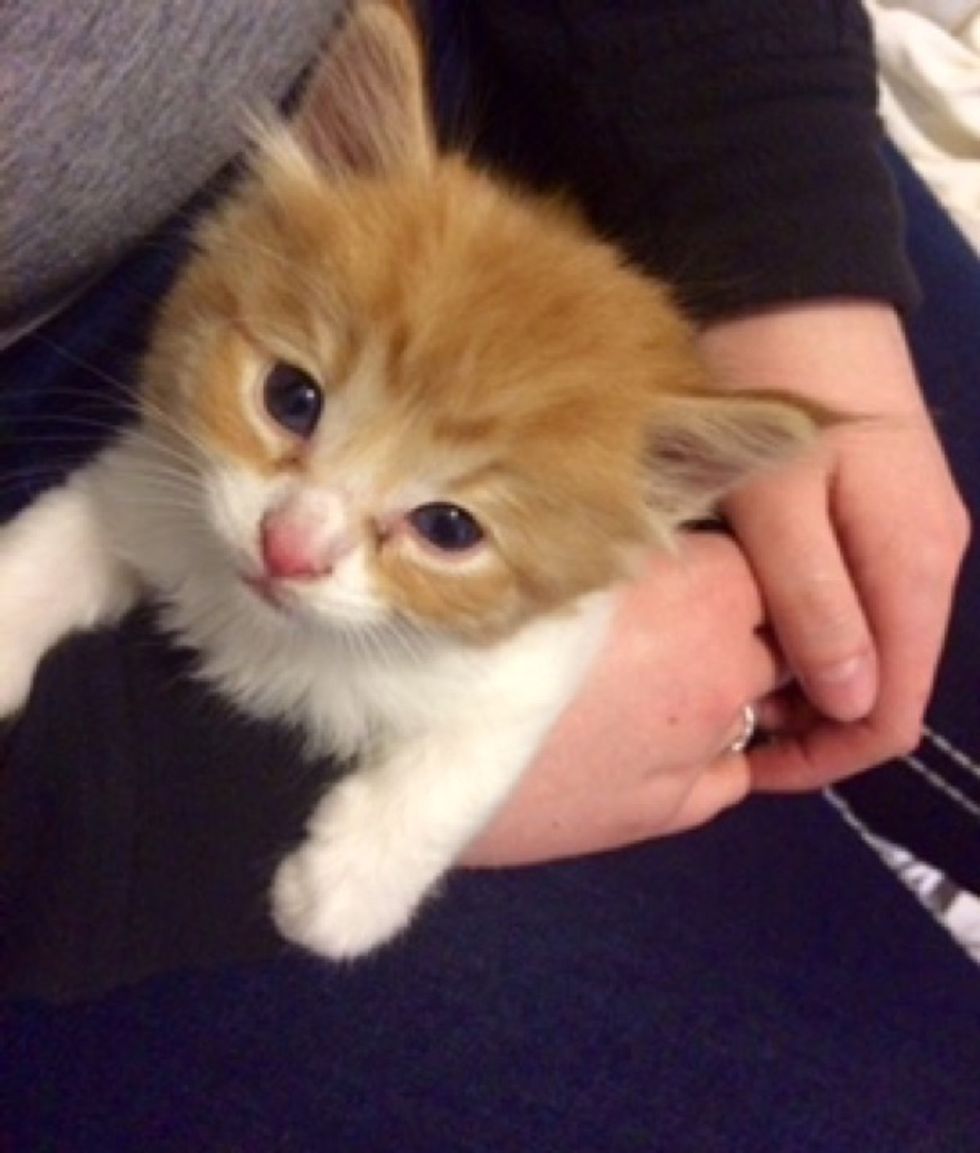The couple already had three cats and a dog, a full house, so Leslie thought about her sister, Sarah, who is also a cat lover herself. Sarah came the next day and took the kitten in with open arms.