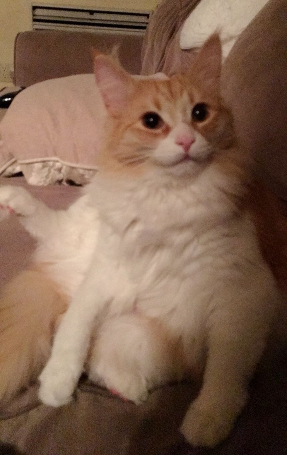 The tiny palm-sized kitten has blossomed into a beautiful fluffy cat.