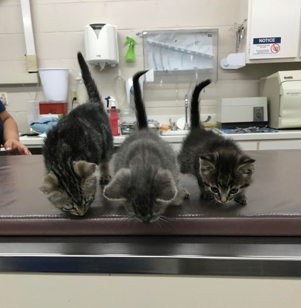 A little stray kitten and his two siblings came to the Eastex Veterinary Clinic in Humble, Texas after they were found in the Houston area.