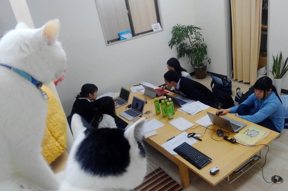 In addition to that, they pay workers a "cat bonus" of 5,000 yen ($45USD) to anyone who rescues or adopts a cat in need.