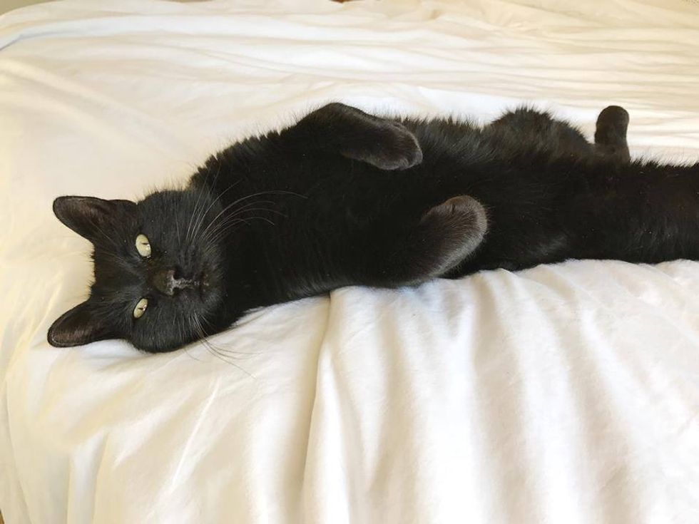 "Freddie jumped right onto my bed last night as if nothing had changed, and remains there this morning basking in the winter sun," Justin wrote.