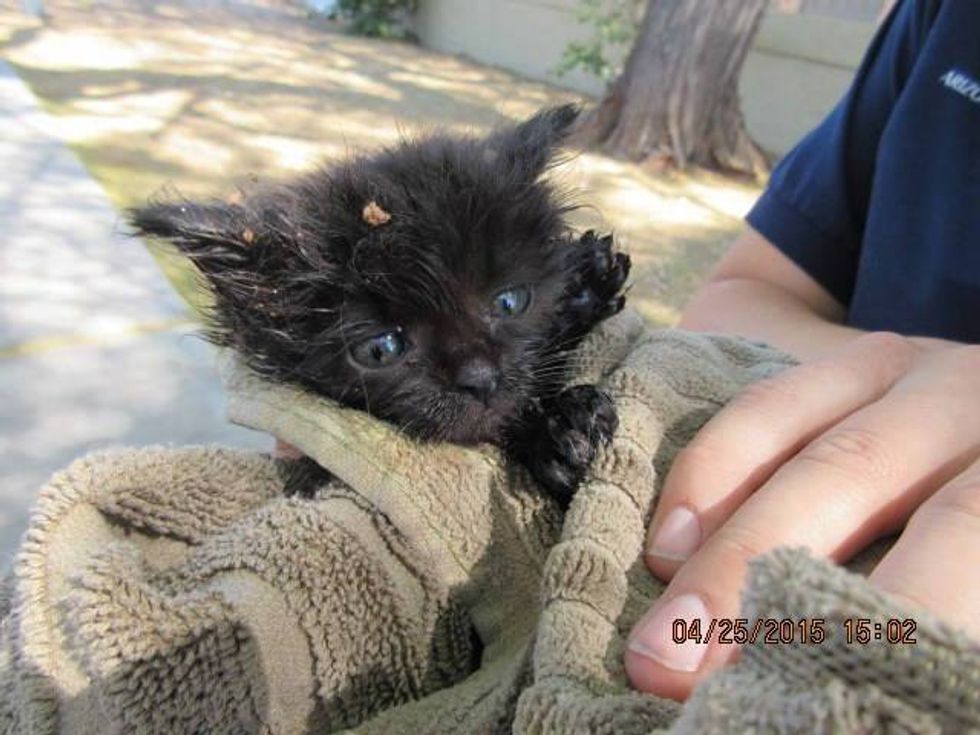 The tiny one-pound kitten received a clean bill of health and headed off to foster care. When little Tera is big enough, she will be put up for adoption.