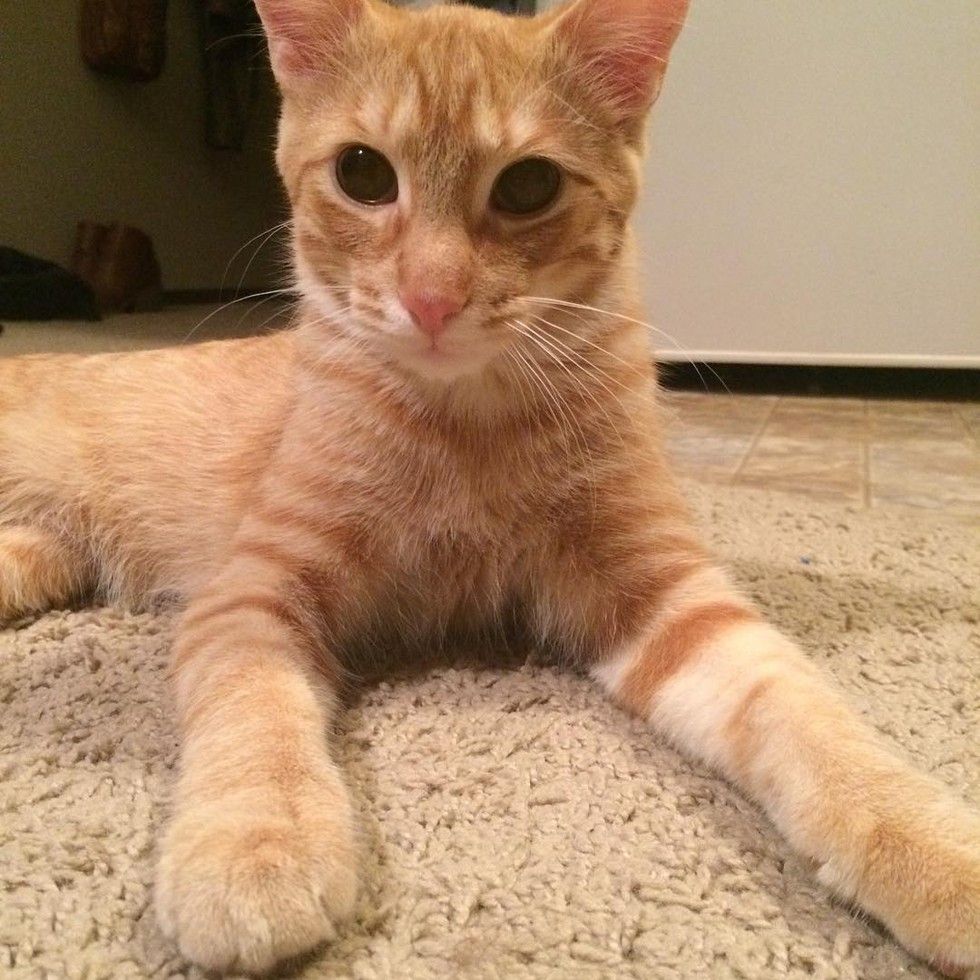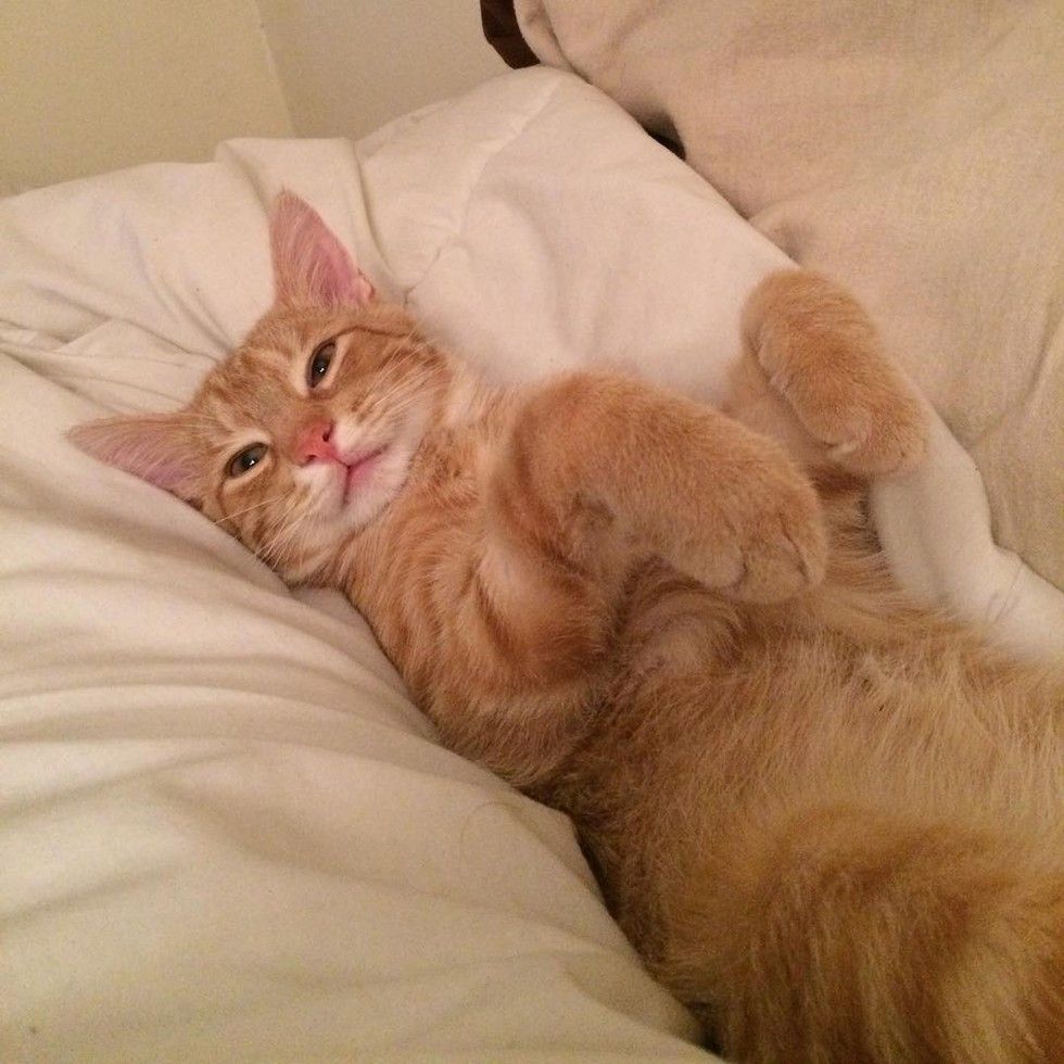 He's grown into a happy, handsome ginger cat who loves to be pampered and loved!